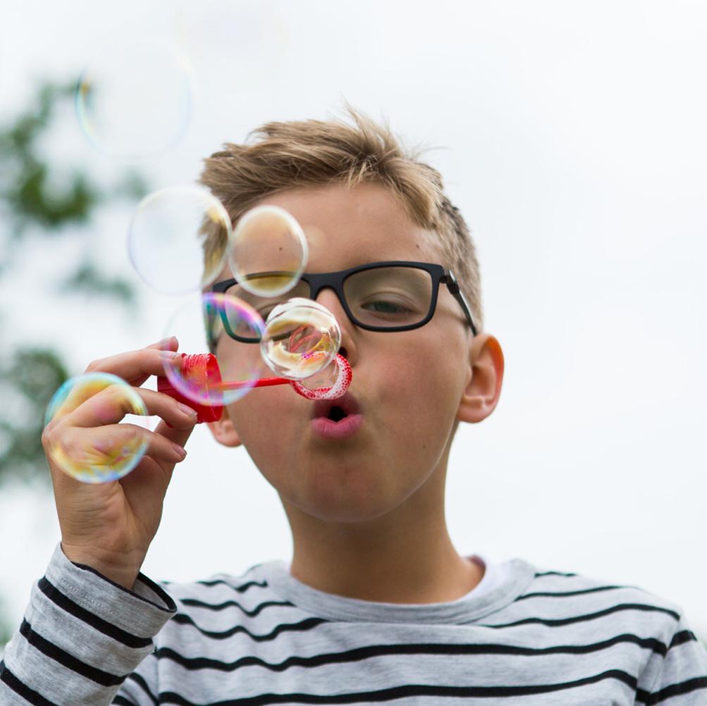 Children's eyes are still developing and undergoing numerous changes: a visual acuity of around 50 percent in the first year of life generally jumps to 100 percent once they've reached the age of three. Spatial vision is completely evolved by the time a child is nine years old, while their field of vision continues to develop until they're about 12. Even then, this development process is not yet complete, because a person's eyes continue to grow until they become an adult. Thus it's important to have your child's vision tested frequently. An ophthalmologist, optometrist or a specialist optician should check regularly if the spectacle lenses still have the right prescription as this can change quickly, especially with children. Protecting children's eyes from harmful UV radiation is also an absolute must, and kids' glasses must meet certain other criteria, like exceptional robustness.